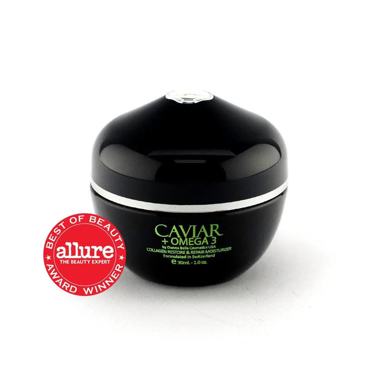 Donna Bella’s Caviar + Omega 3 Collagen Restore and Repair Moisturizer is designed to hydrate skin back to optimal health and stimulate collagen production. Caviar’s Omega 3 and Omega 6 fatty acids balance skin and decrease inflammation. Continued use minimizes wrinkles and sun damage.