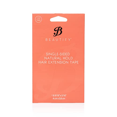 Details: Hair Extensions Tape Tabs ,Walker Beautify - SINGLE SIDED - Natural Hold Hair Extension Tape Tabs -120 Tabs , Weft Hair Extensions, . Walker Tape Tape Tabs are the longest holding tape tabs that we offer. Ultra Hold is an acrylic-based tape and is very strong, super tacky, and very flexible |--| They have a dull finish so they won't shine through. The liner is white but the actual tape is clear. It is available as single-sided and double-sided tape tabs.|--| HOLD TIME: Maximum Hold (4-6 +Weeks) |--| PREPARATION: Extension Prep Shampoo should always be the first step in preparing for an install. Extension Prep Shampoo breaks down adhesives, scrubs the skin, and cleans the hair in one step. |--| Single side is no shinning, NO SHINING update quality which can help you make hair extension better than any other Single-Sided Natural Hold. |--| DIRECTIONS: Peel the liner off tab Place onto the extension weft – avoid touching adhesive Place the tab onto the hair Repeat as needed. When ready to apply to the single-sided tape, remove hair that is not stuck to tape and apply the tape tab, sandwiching the hair between extensions. Peel off the remaining tabs and install to the hair |--| MEASUREMENTS: 1 9/16″ x 5/16″ Tabs includes 10 sheets of 12 tabs (120 total) - One Pack.