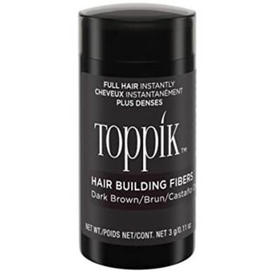 Made of natural, colored Keratin protein that is statically charged, TOPPIK Fibers intertwine with your existing hair for a completely natural look. TOPPIK resists wind, rain, and perspiration but removes easily with shampoo.