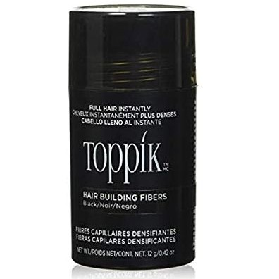 Made of natural, colored Keratin protein that is statically charged, TOPPIK Fibers intertwine with your existing hair for a completely natural look. TOPPIK resists wind, rain, and perspiration but removes easily with shampoo.