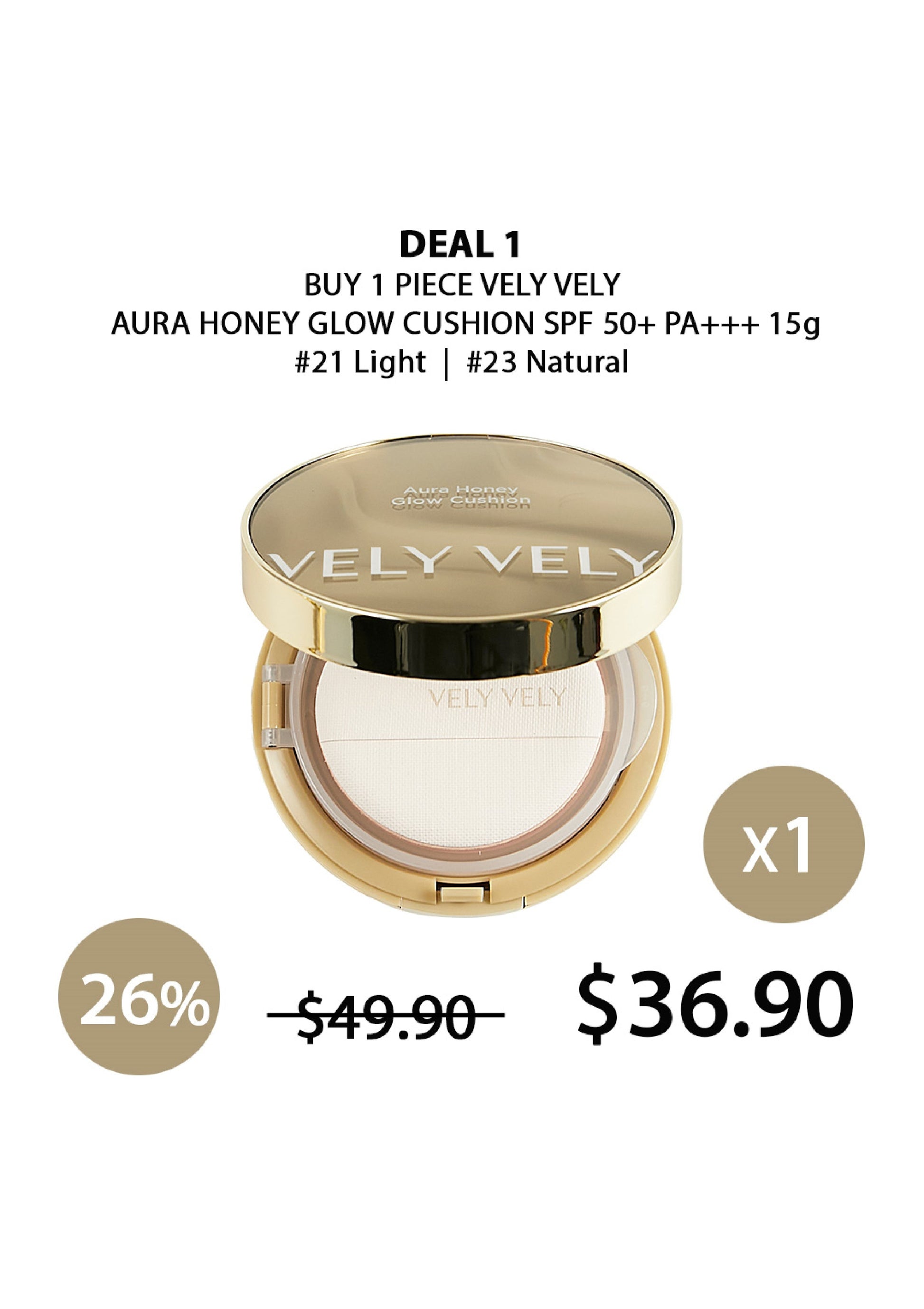 [VELY VELY] Aura Honey Glow Cushion SPF 50+ PA+++ 15g